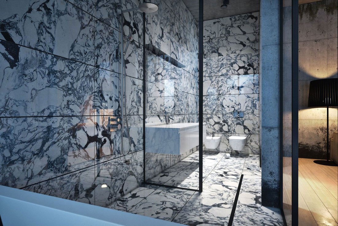 Chất liệu đá cẩm thạch, đá hoa cương sau khi được tìm thấy, đã được xử lý bằng nhiều cách sáng tạo và đã trở thành một trong những loại chất liệu được yêu thích và sử dụng ở nhiều khu dân cư cao cấp trong suốt những năm qua. Đặc biệt đối với các không gian sảnh và phòng tắm, chất liệu này đã nhấn mạnh và tăng thêm tính giá trị, sang trọng trong các không gian. Ngoài những đường nét đá tự nhiên biến hóa bắt mắt, chất liệu sáng bóng, chống thấm nước đã khiến nó luôn được dành sự ưu tiên nhiều nhất cho các phòng tắm. Dưới đây là những mẫu đá cẩm thạch được ứng dụng vào trong không gian tắm của các chung cư, biệt thự cao cấp sắp được ưa chuộng nhất trong năm 2020: