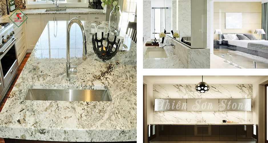 Đá marblelà một trong những đá tự nhiên được ứng dụng rộng rãi cho nhiều công trình, dự án, biệt thự cao cấp như: lát nền, ốp tường, ốp cột, lát cầu thang, ốp bếp, quầy lễ tân, bàn lavabo, làm bàn ghế, phòng khách, nhà tắm… Sự góp mặt của đá marble trong các thiết kế làm gia tăng tính thẩm mỹ cho công trình, tạo nên vẻ đẹp tinh tế và sang trọng.